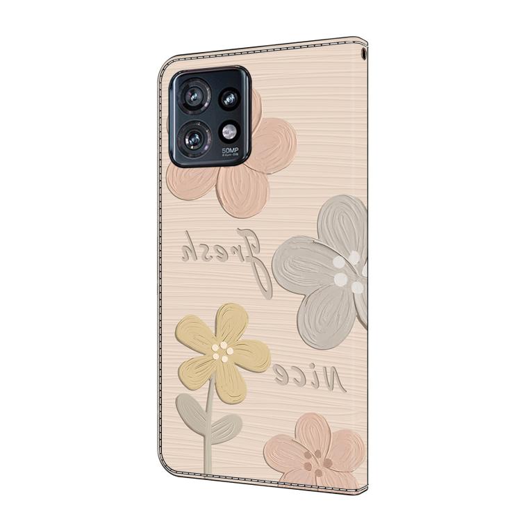 Funda de Piel Pintada a Mano Motorola Edge+ (2023) con Flores (Beige)