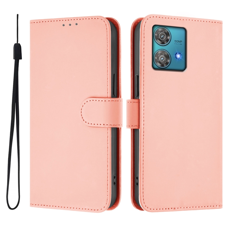 Funda de Piel Sintética con Cordón para Motorola Edge 40 Neo 5G (Rosa)