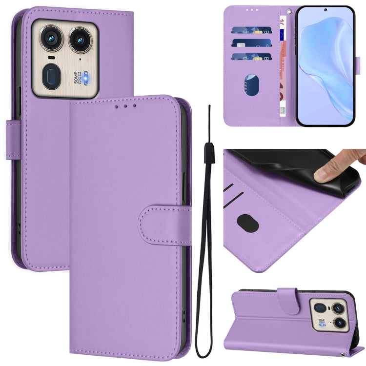 Funda de Piel Sintética con Cordón para Motorola Edge 50 Ultra/X50 Ultra (Morado Lavanda)