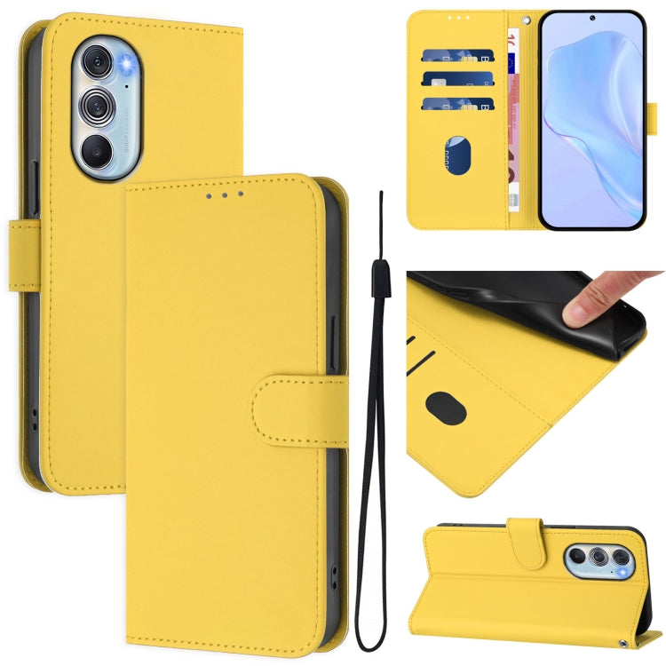 Funda de Piel Sintética con Cordón para Motorola Edge X30 5G/30 Pro (Amarillo Limón)