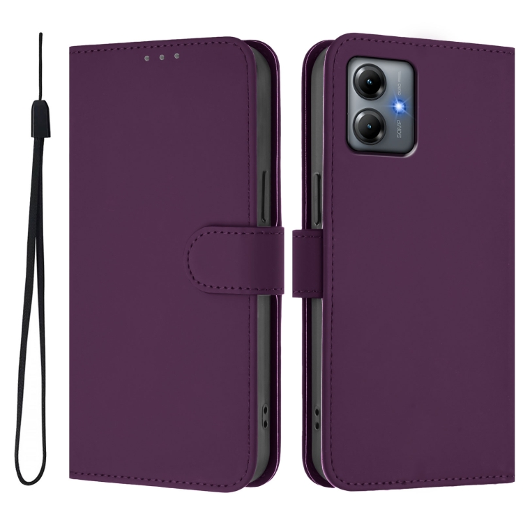 Funda de Piel Sintética con Cordón para Motorola Moto G14 4G (Violeta)