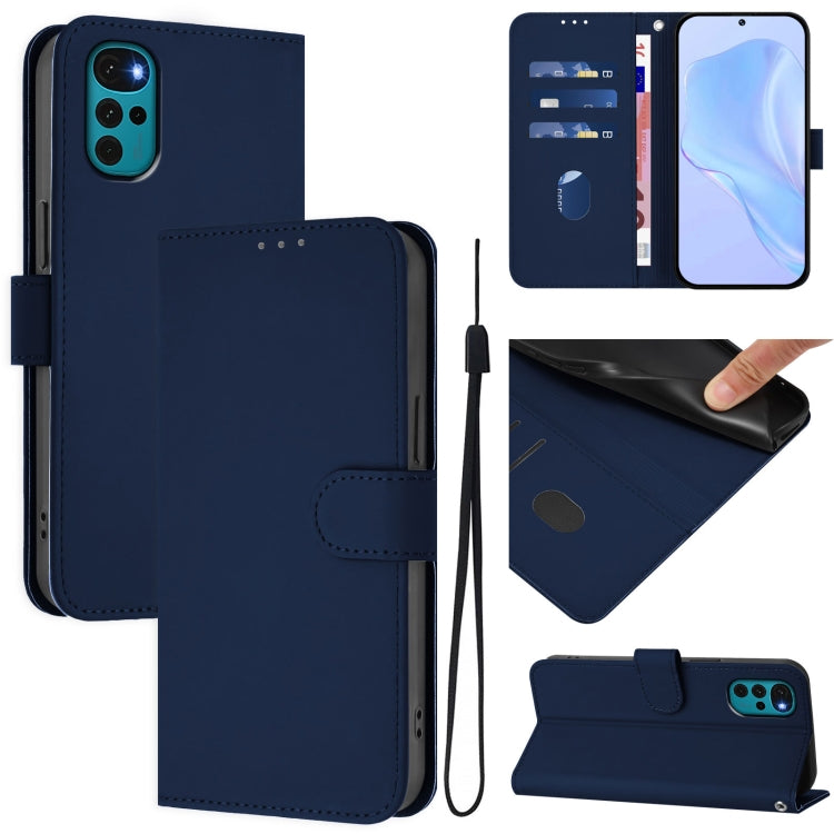 Funda de Piel Sintética con Cordón para Motorola Moto G22 4G/E32S (Azul Marino)