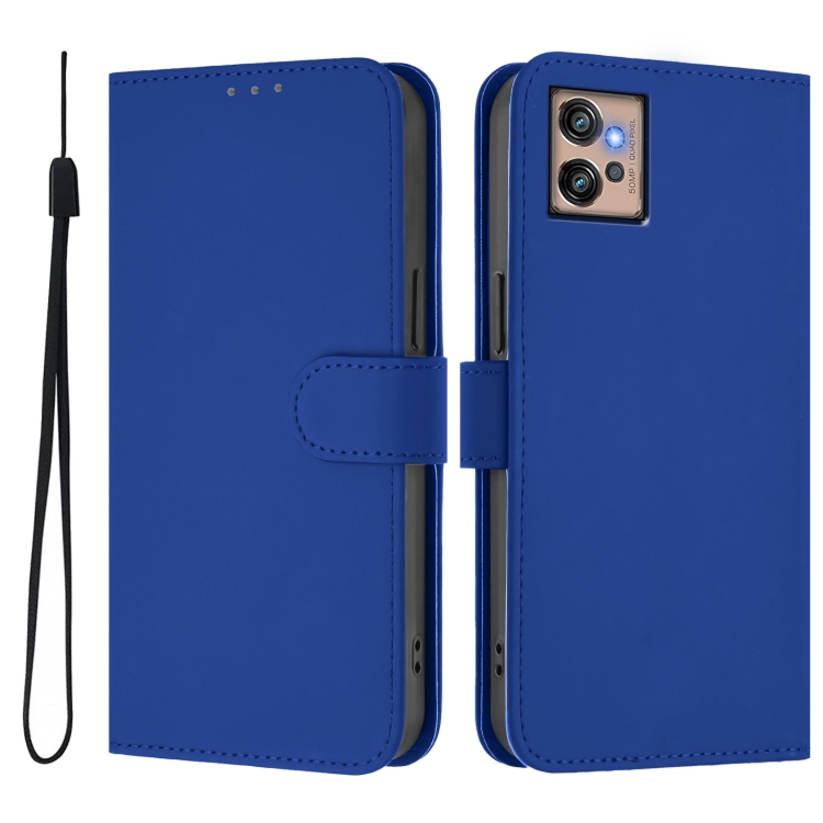 Funda de Piel Sintética con Cordón para Motorola Moto G32 (Azul Oscuro)