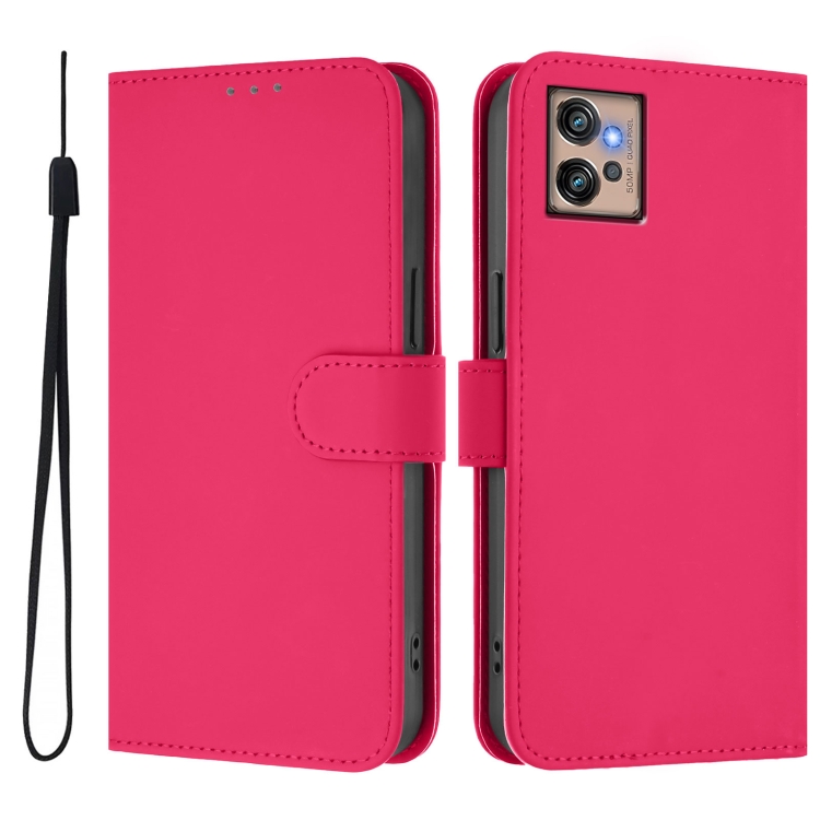 Funda de Piel Sintética con Cordón para Motorola Moto G32 (Rosa y Rojo)