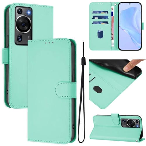 Funda de Piel Sintética con Cordón para Huawei P60/P60 Pro (Verde Menta)