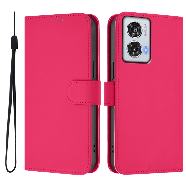 Funda de Piel Sintética con Cordón para Motorola Edge 50 Fusion (Rosa y Rojo)