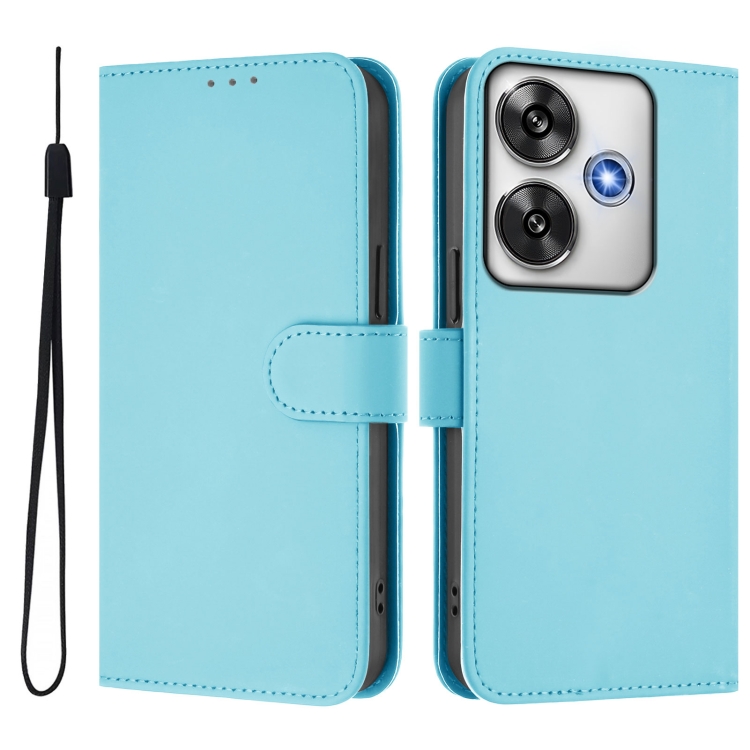 Funda de Piel Sintética con Cordón para Xiaomi Poco F6 5G (Azul Cielo)