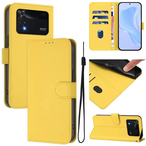 Funda de Piel Sintética con Cordón para Xiaomi Poco M4 Pro 4G (Amarillo Limón)
