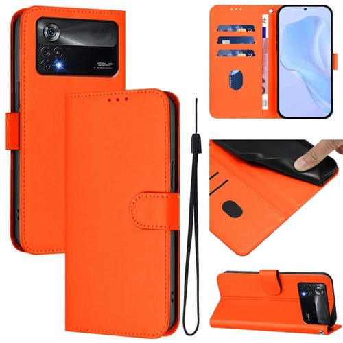 Funda de Piel Sintética con Cordón para Xiaomi Poco X4 Pro 5G (Naranja)