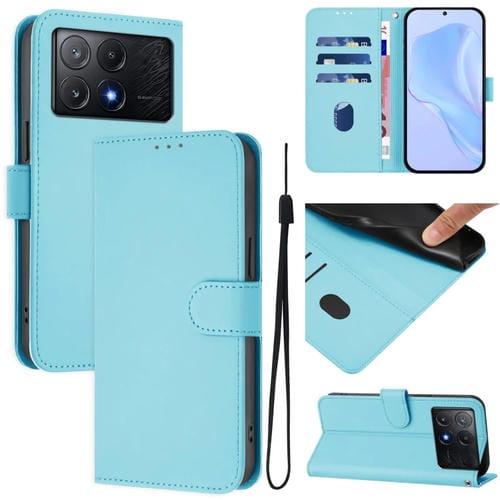 Funda de Piel Sintética con Cordón para Xiaomi Poco X6 Pro (Azul Cielo)