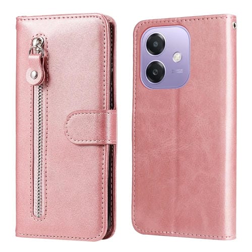 Funda de Piel Sintética con Cremallera y Textura de Becerro para Oppo A3X 4G/A3X 5G (Oro Rosa)