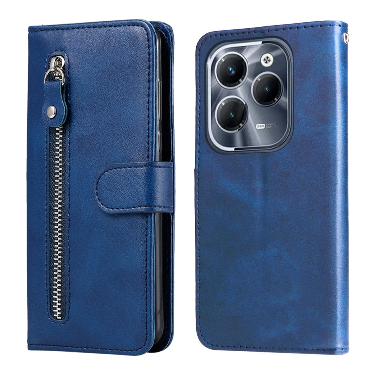 Funda de Piel Sintética con Cremallera y Textura de Piel de Becerro para Infinix Hot 40 y Hot 40 Pro (Azul)