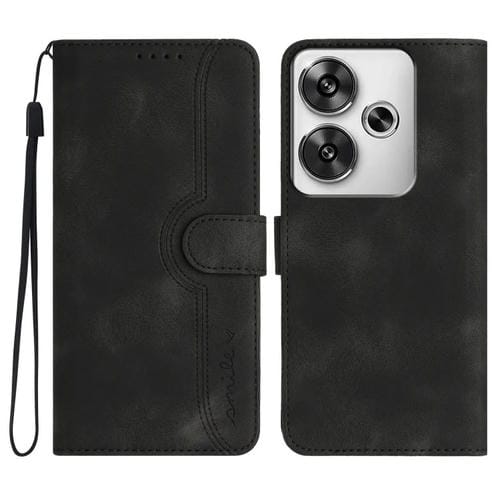 Funda de Piel Sintética con Diseño de Corazón para Xiaomi Poco F6/Redmi Turbo 3 (Negra)
