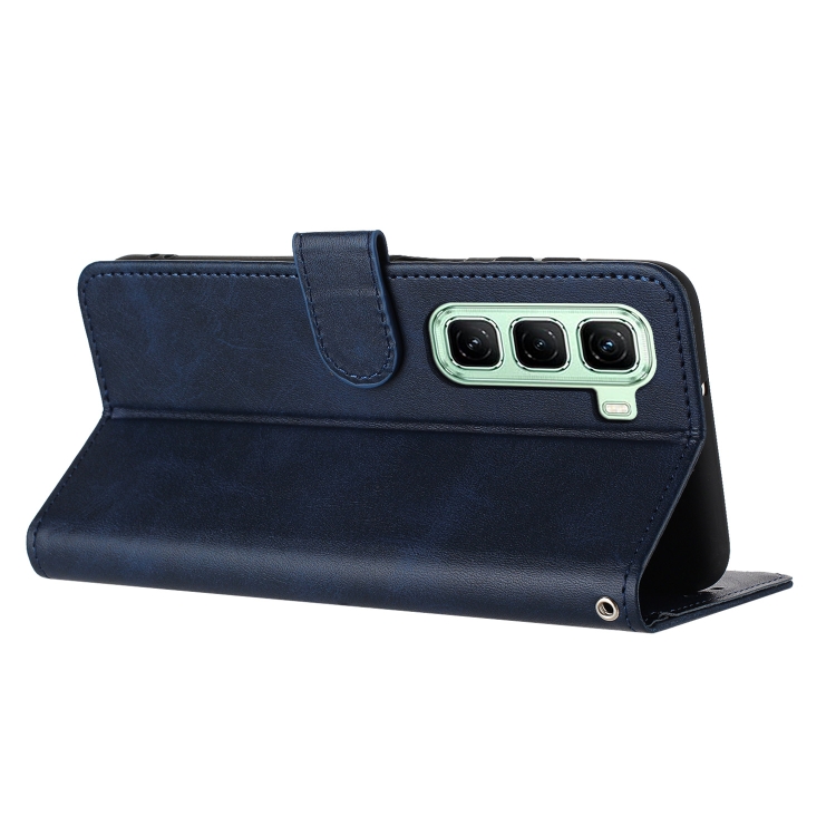 Funda de Piel Sintética con Tapa para Infinix Hot 50 5G Textura Becerro (Azul Oscuro)