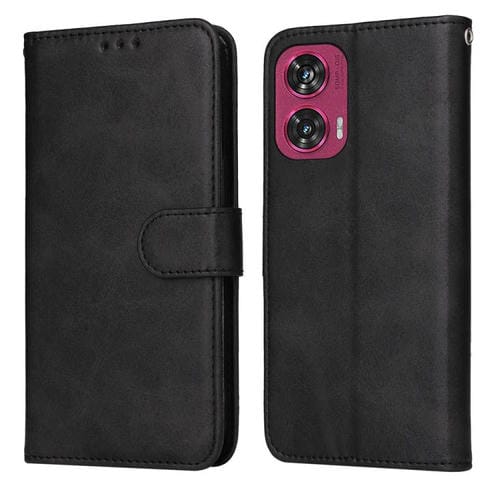 Funda de Piel Sintética con Tapa y Textura Clásica Becerro para Motorola Edge 50 Fusion (Negra)