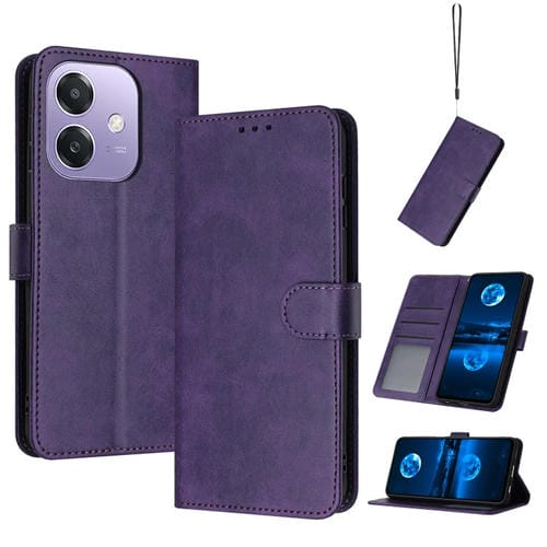 Funda de Piel Sintética con Tapa y Textura de Piel de Becerro para Oppo A3X (Morado)