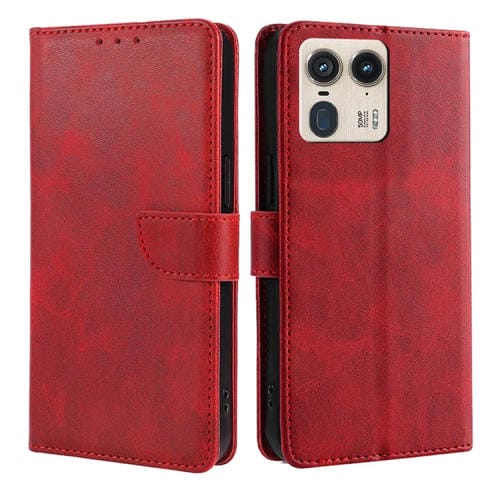Funda Piel Sintética Motorola Edge 50 Ultra Textura Becerro Hebilla (Rojo)