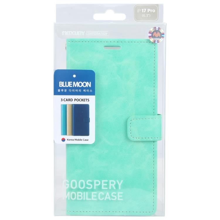 Funda de piel texturizada Crazy Horse GOOSPERY BLUE MOON para iPhone 17 Pro (Verde menta)