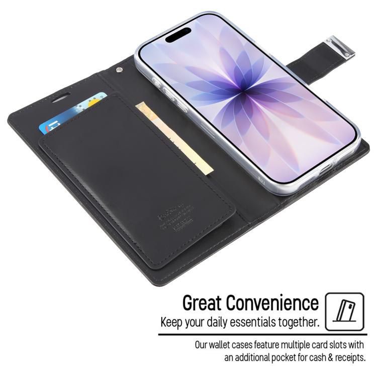 Funda de piel texturizada Crazy Horse para iPhone 17 GOOSPERY RICH DIARY (Negra)
