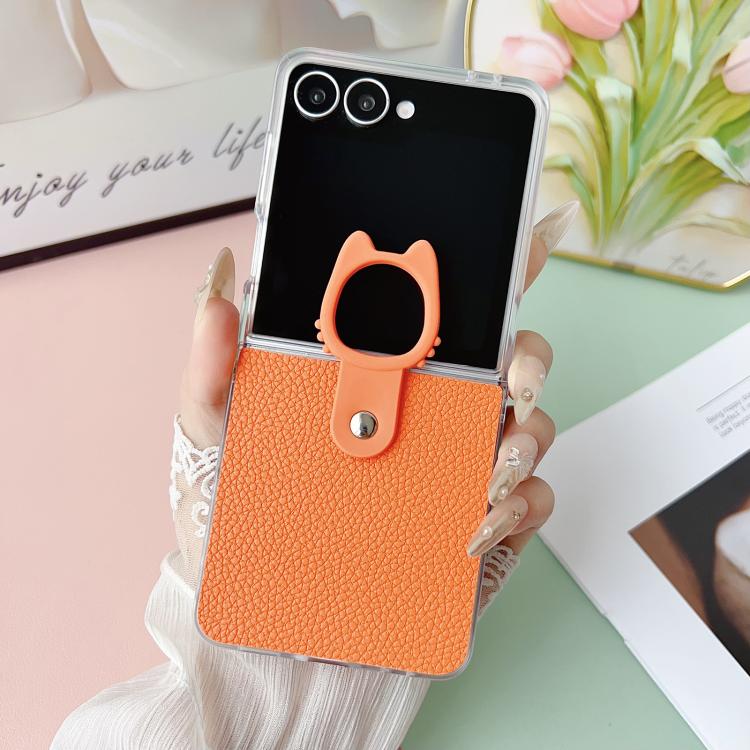 Funda de poliuretano termoplástico (PU) y policarbonato con marco transparente y soporte para anillo para Samsung Galaxy Z Flip6 5G (naranja)