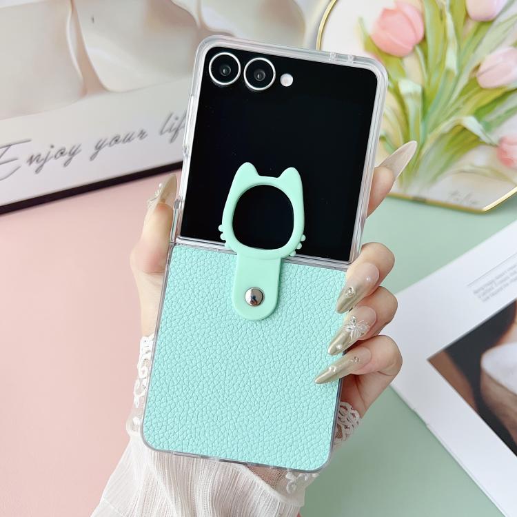 Funda de poliuretano termoplástico (PU) y policarbonato con marco transparente y soporte para anillo para Samsung Galaxy Z Flip6 5G (verde menta)