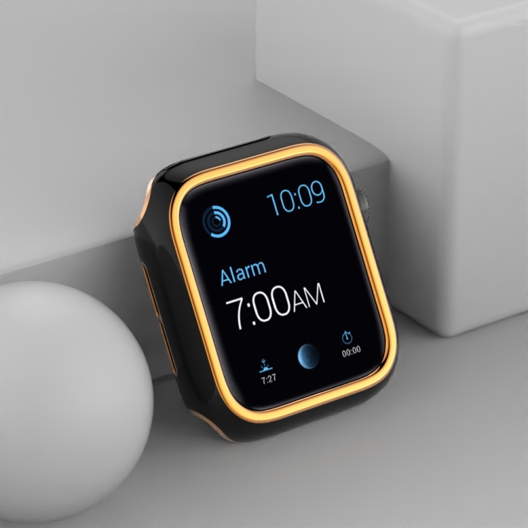 Funda de Reloj PC Galvanoplastia Dos Colores para Apple Watch Series 6 SE 5 4 40mm (Black Rose Gold)