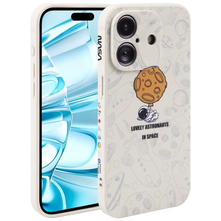 Funda de Silicona iPhone 16 Borde Recto Diseño Astronauta (Blanco)