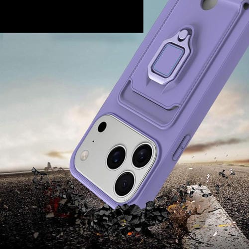 Funda de silicona con soporte magnético para tarjetas y correa deslizante para iPhone 17 (azul marino)