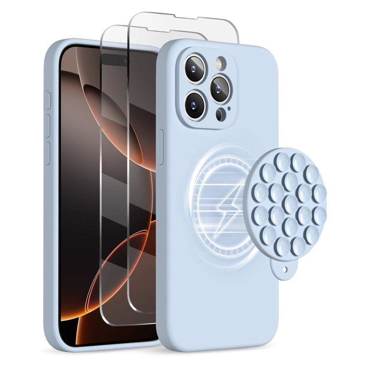 Funda de Silicona con Ventosa Magsafe para iPhone 16 Pro Max con Película de Pantalla (Azul Sierra)