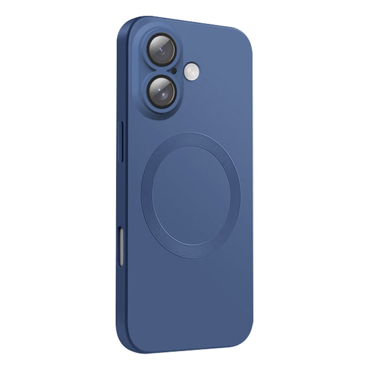 Funda de Silicona Líquida Magsafe para iPhone 16 con Textura de Cd (Azul Medianoche)