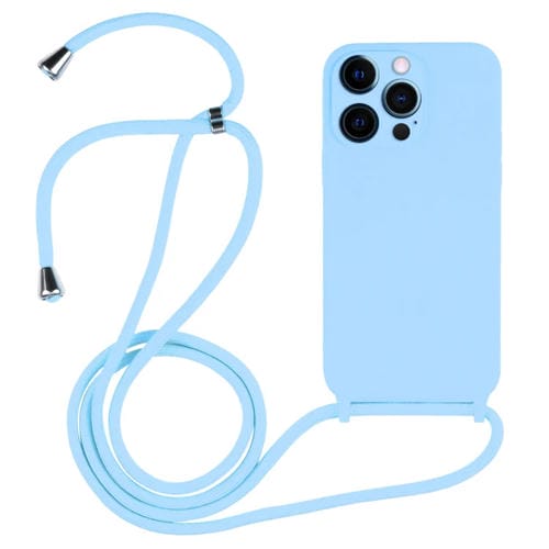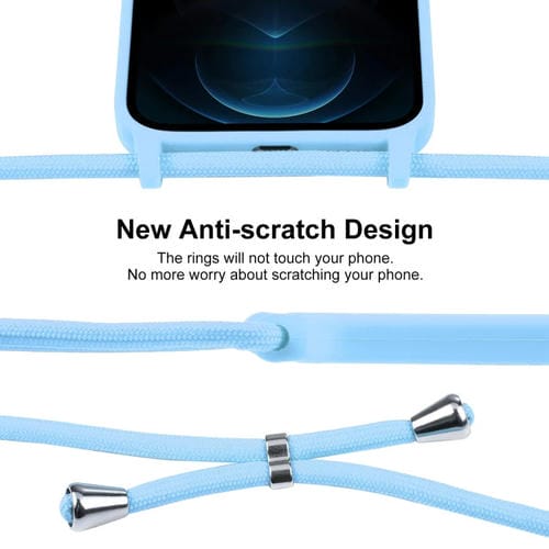 Funda de Silicona Líquida para iPhone 12 Pro Max Crossbody Lanyard (Azul)