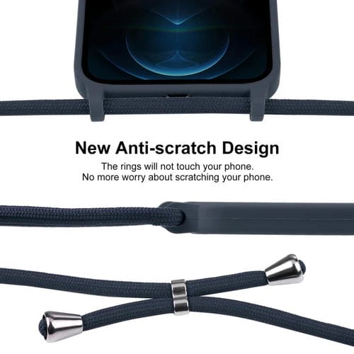 Funda de Silicona Líquida para iPhone 12 Pro Max Crossbody Lanyard (Azul Medianoche)