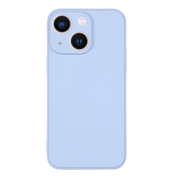 Funda de Silicona para iPhone 13 Mini con Correa para la Muñeca (Azul Claro)