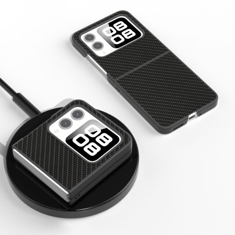 - 1x Funda de Teléfono Huawei Nova Flip con Textura de Fibra de Carbono y Marco (Negro)