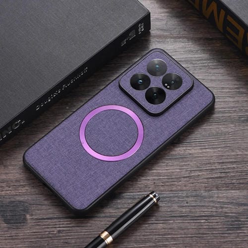Funda de Teléfono con Textura de Tela Magnética con Cd para Xiaomi 14T Pro (Morada)