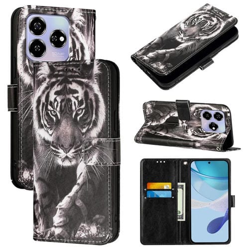 Funda de Teléfono de Cuero ZTE Blade V60 Axon 60 4G con Patrón Tigre (Blanco y Negro)