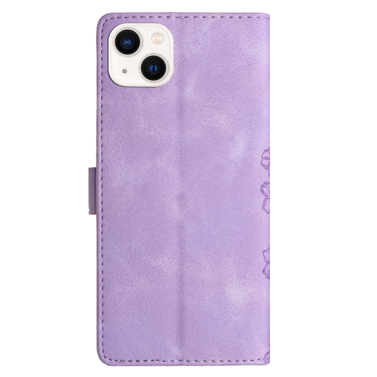 Butterfly Cherry Blossom Embossed PU Leather Phone Case for iPhone 13 mini (Purple)