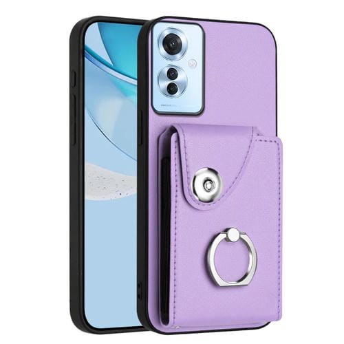 Funda de Teléfono de Pu con TaRJetero y Anillo para Oppo F25 Pro 5G (Morado)
