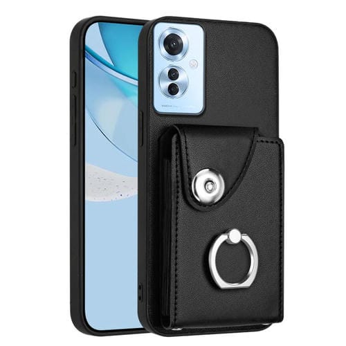 Funda de Teléfono de Pu con TaRJetero y Anillo para Oppo F25 Pro 5G (Negra)