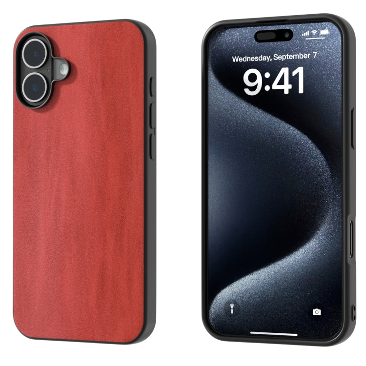 Funda de teléfono PU iPhone 16 textura becerro dos colores marco negro (Rojo)