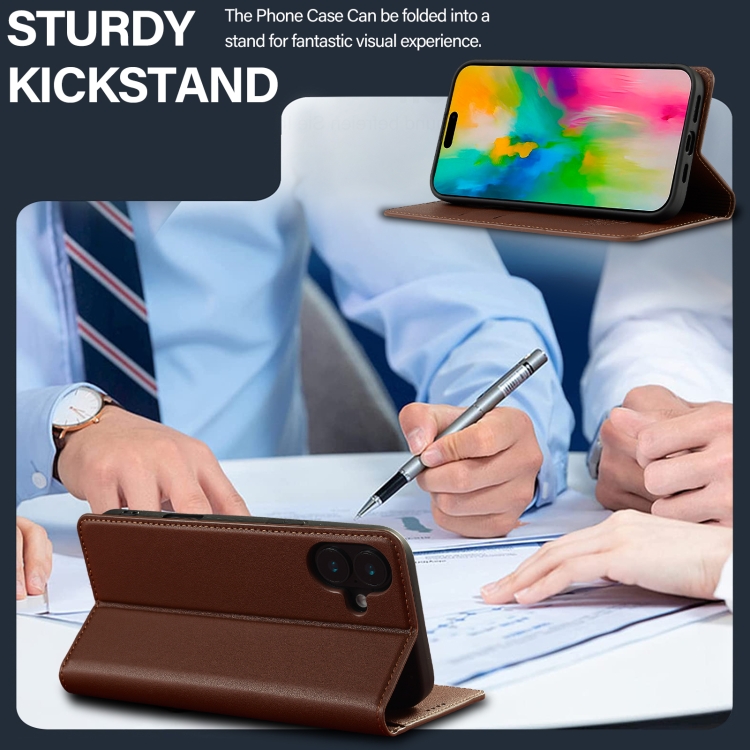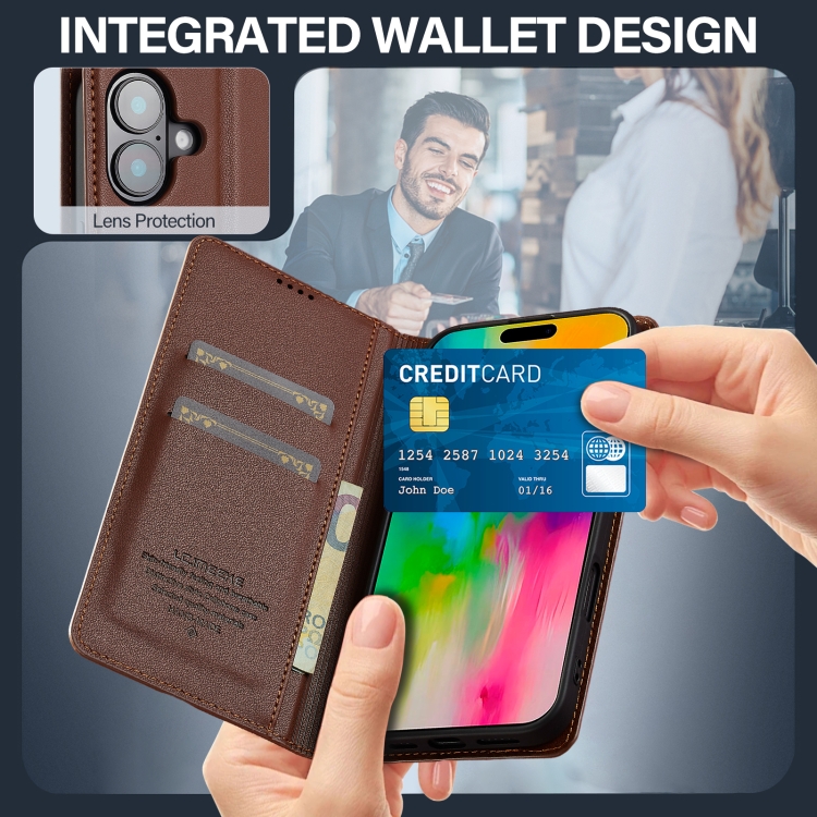 Funda de teléfono Pu Lc.Imeeke L1 Series para iPhone 16 con textura fina esmerilada (Marrón)
