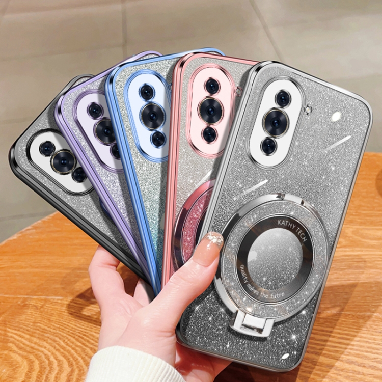 - 1x Funda TPU con Soporte redondo y purpurina degradada para Huawei Nova 10 (Azul Sierra)