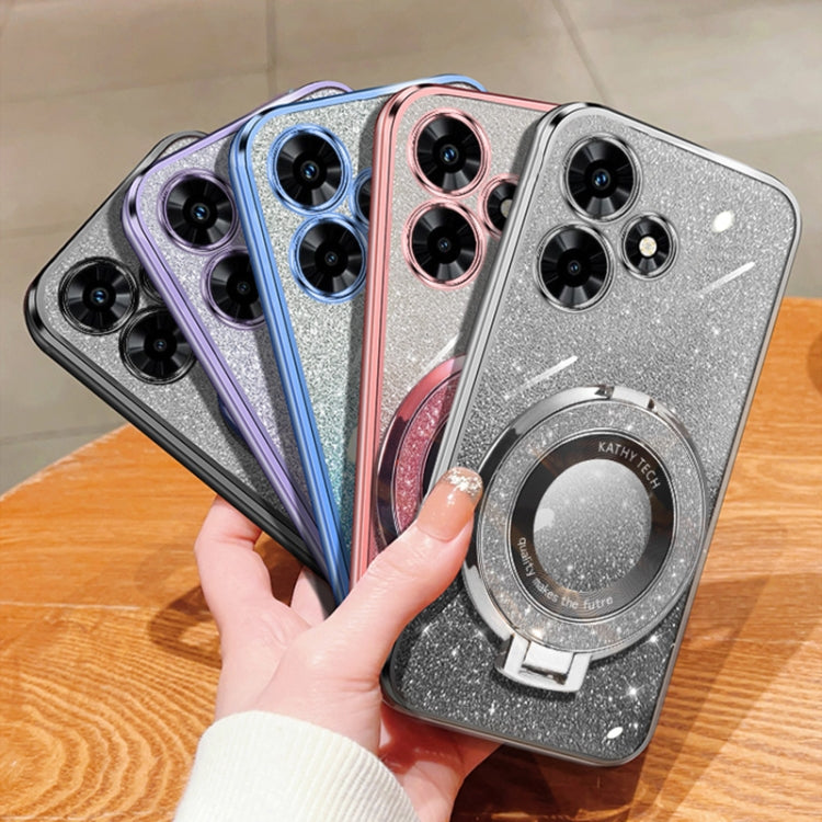 Funda TPU con Soporte Redondo y Purpurina Degradada para Infinix Hot 30 (Azul Sierra)
