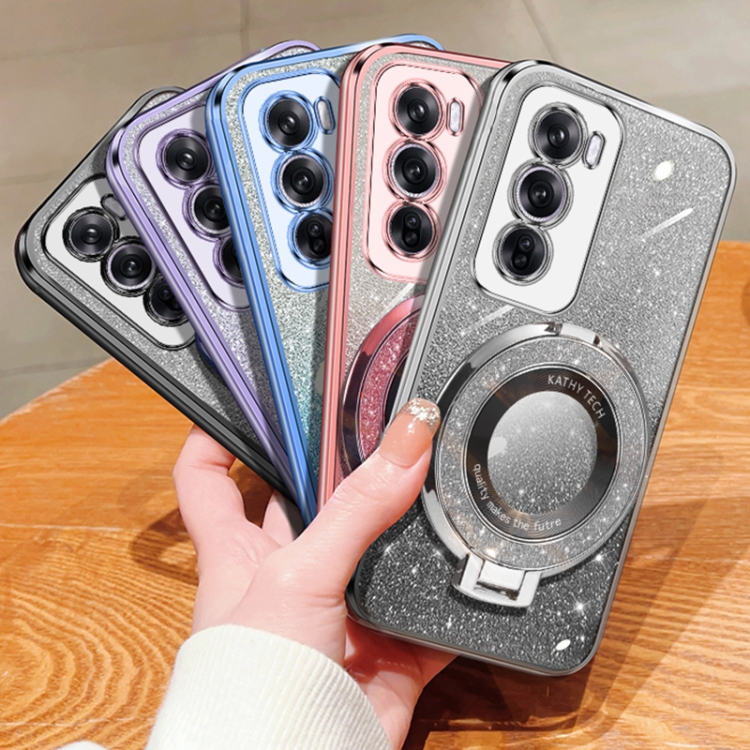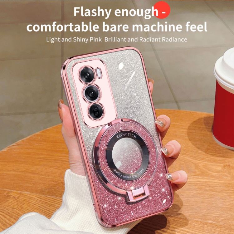 Funda de Teléfono de TPU con Soporte Redondo y Purpurina Degradada para Oppo Reno12 Global (Plateada)
