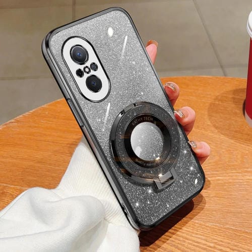 Funda TPU con Soporte Redondo y Purpurina Degradada para Huawei Nova 9 Se (Negro)