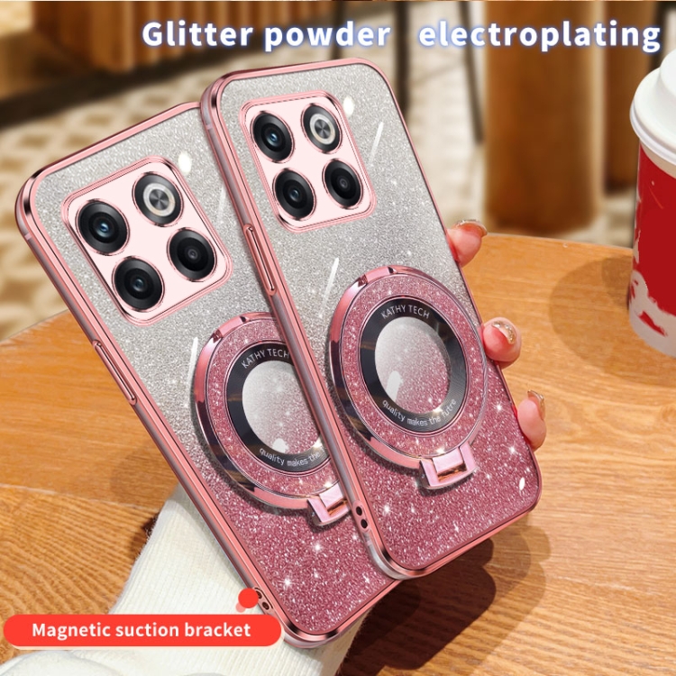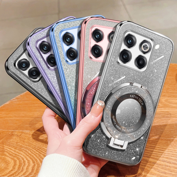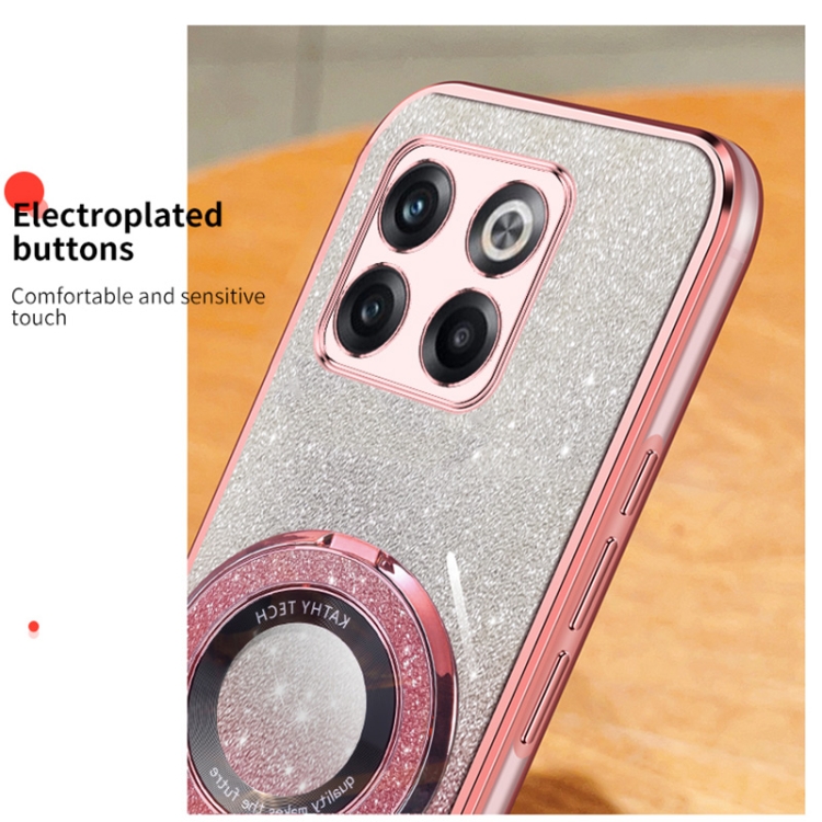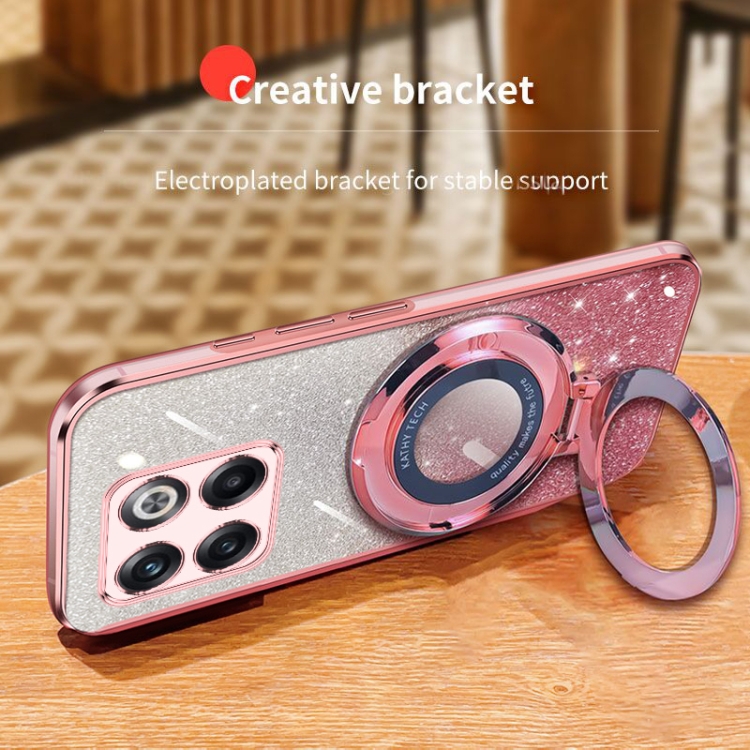 Funda TPU con Soporte Redondo y Purpurina Degradada Plateada para OnePlus 10T (Rosa)