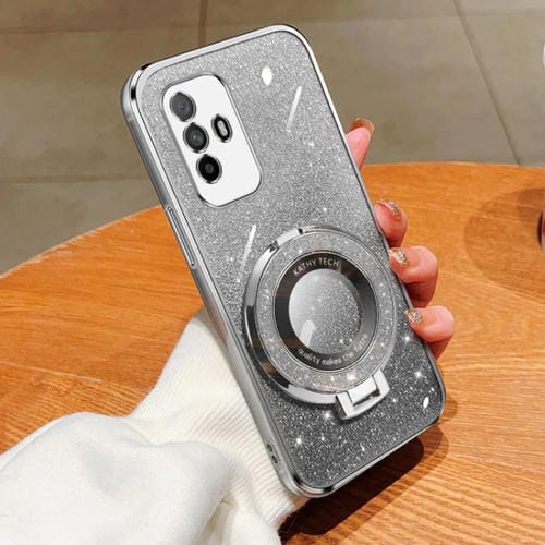 Funda de Teléfono de TPU con Soporte Redondo y Purpurina Degradada Plateada para Oppo A95 4G (Plateada)