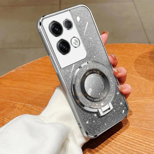 Funda de Teléfono de TPU con Soporte Redondo y Purpurina Degradada Plateada para Oppo Reno8 Pro+ (Plateada)