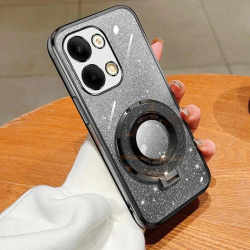 Funda de Teléfono de TPU con Soporte Redondo y Purpurina Degradada Plateada para Oppo Reno9 (Negra)