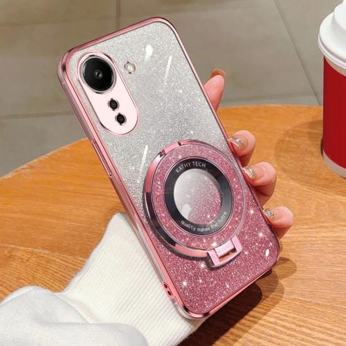 Funda de Teléfono de TPU con Soporte Redondo y Purpurina Degradada Plateada para Redmi 13C 4G (Rosa)